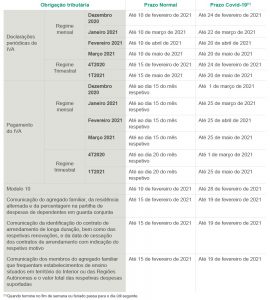 Resumo dos novos prazos de que os contribuintes podem beneficiar: